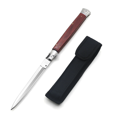 אקק מתקפל סכין כיס בסגנון איטלקי נירוסטה סכין ההישרדות הטוב ביותר edc עם ידית עץ למחנאות טיול